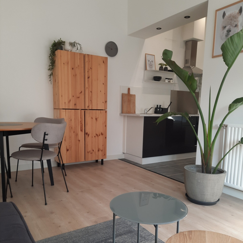 U komt de B&B I binnen via het terras, voorzien van fijne stoelen en een tafeltje. De deur naar binnen verschaft toegang tot een woonkamer met bank en een lekker vloerkleed. Een eettafel met stoelen biedt mogelijkheden voor spelletjes en een heerlijk ontbijt en daarnaast vind u nog een praktische kast voor uw kleding en overige spullen.